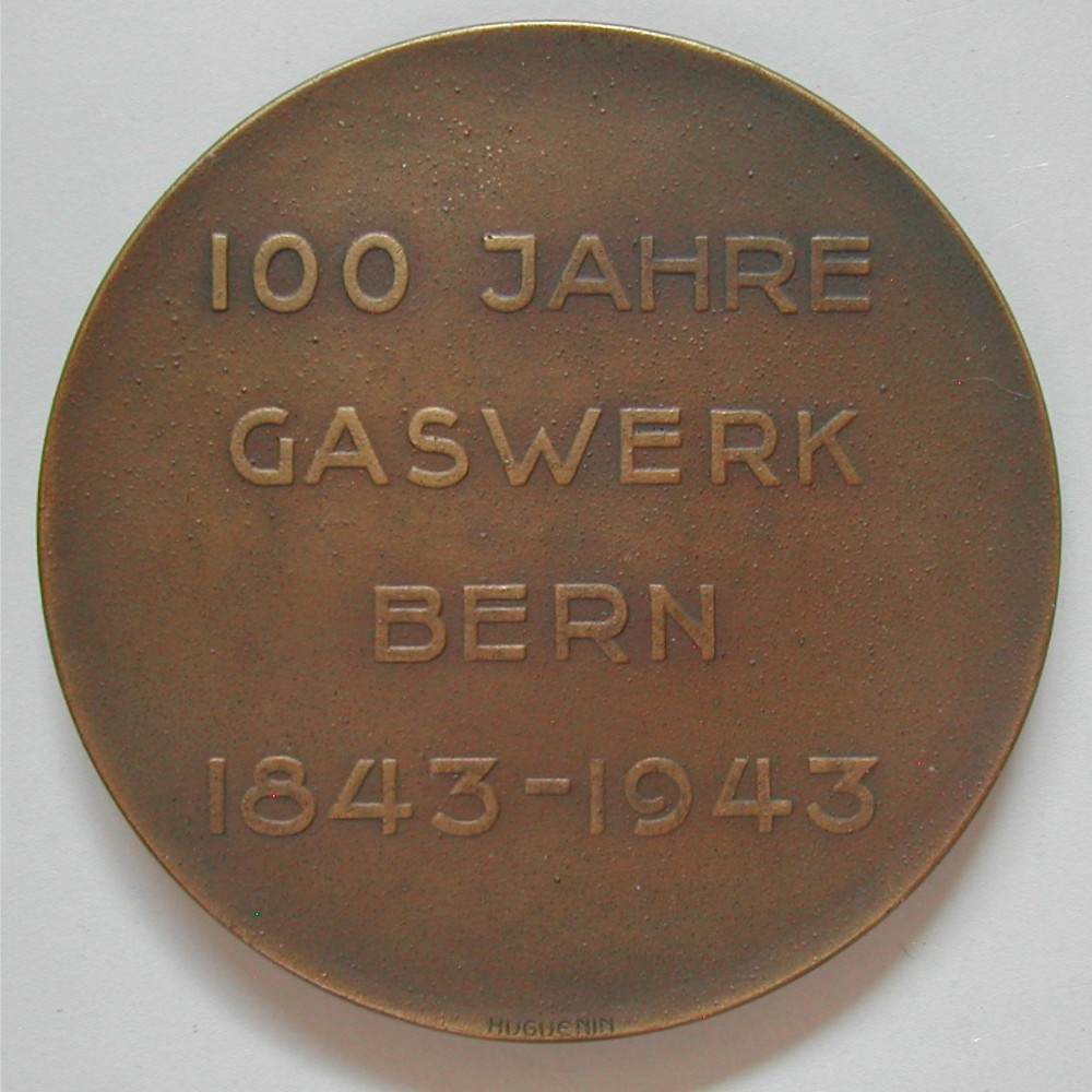 RS: 100 JAHRE / GASWERK / BERN / 1843-1943, sig: HUGUENIN