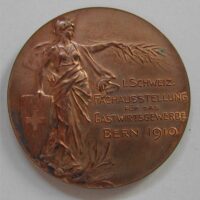80.00 CHF Weitere Informationen1. SCHWEIZ. / FACHAUSSTELLUNG / FÜR DAS / GASTWIRTSGEWERBE / BERN 1910, AE vergoldet, ca 26.1 gr., d=40mm, -unz