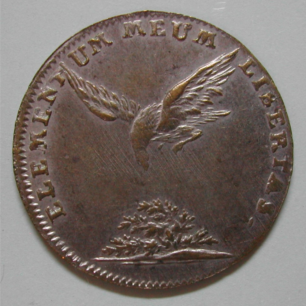 RS: ELEMENTUM MEUM LIBERTAS., Adler über Eichbaum anfliegend