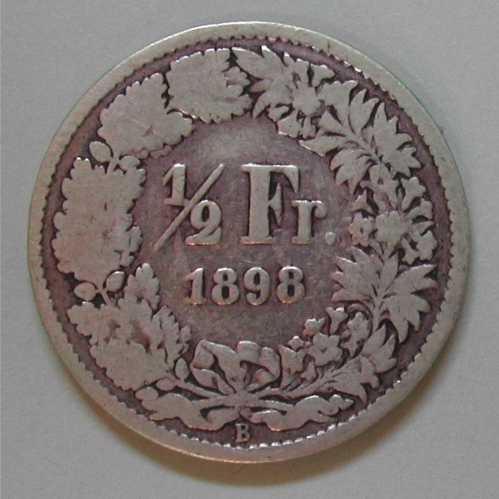 RS: ½ / Fr. / 1898 im Eichen-und Alpenrosenkranz, unten: B (Bern), ABART: gezeichneter Stempel