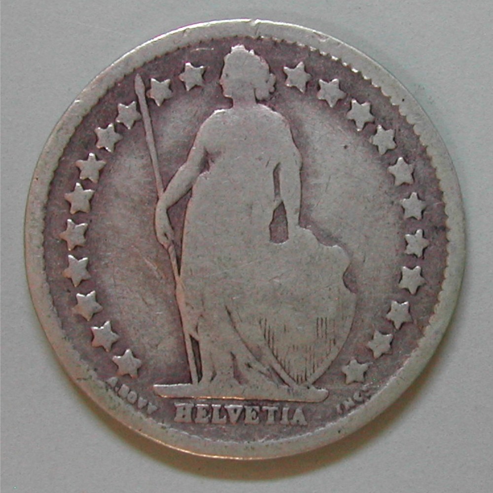 AS: stehende Helvetia mit Schild und Speer zwischen Sternen, in Ex: A.BOVY – HELVETIA – INC T.