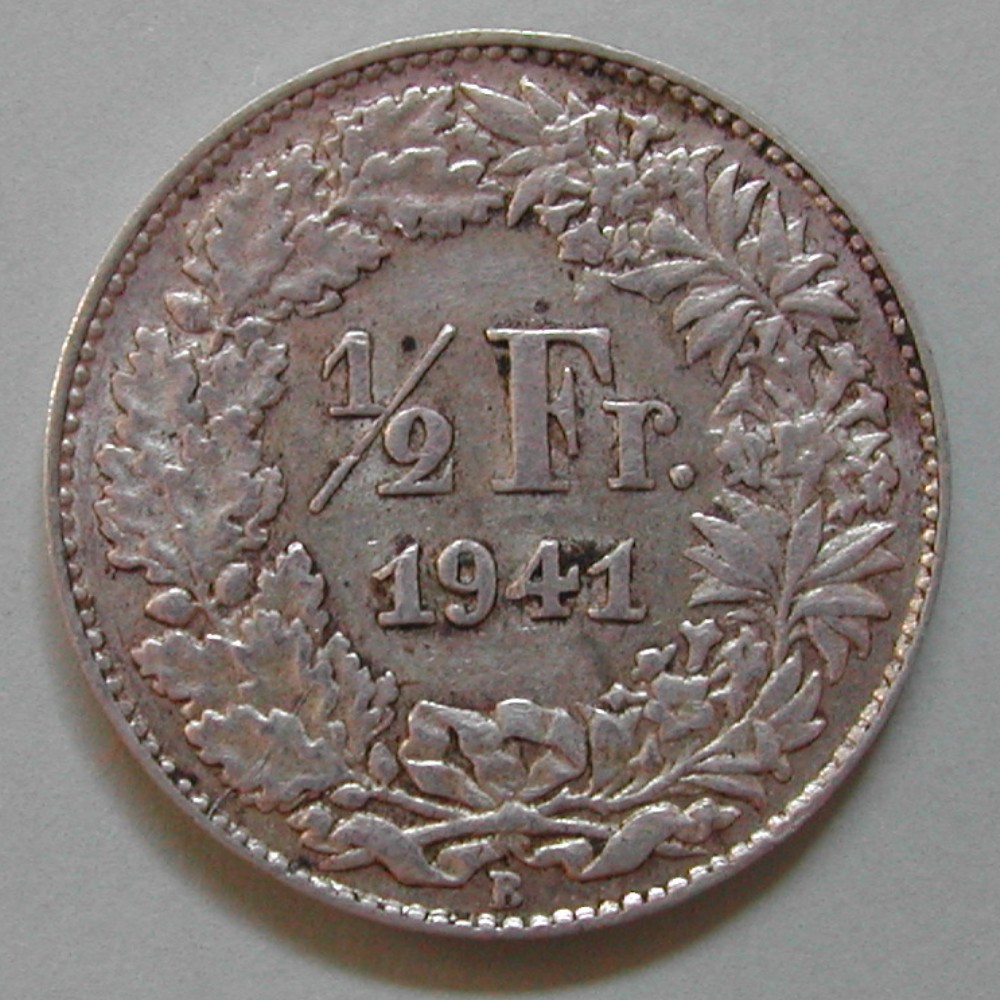 RS: ½ / Fr. / 1941 im Eichen-uns Alpenrodenkranz, unten: B (Bern), “Blatt” rechts über Fr., B unten offen wie R