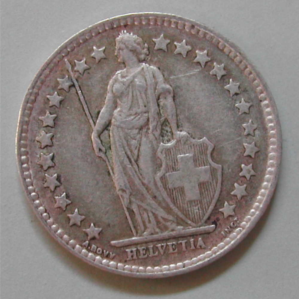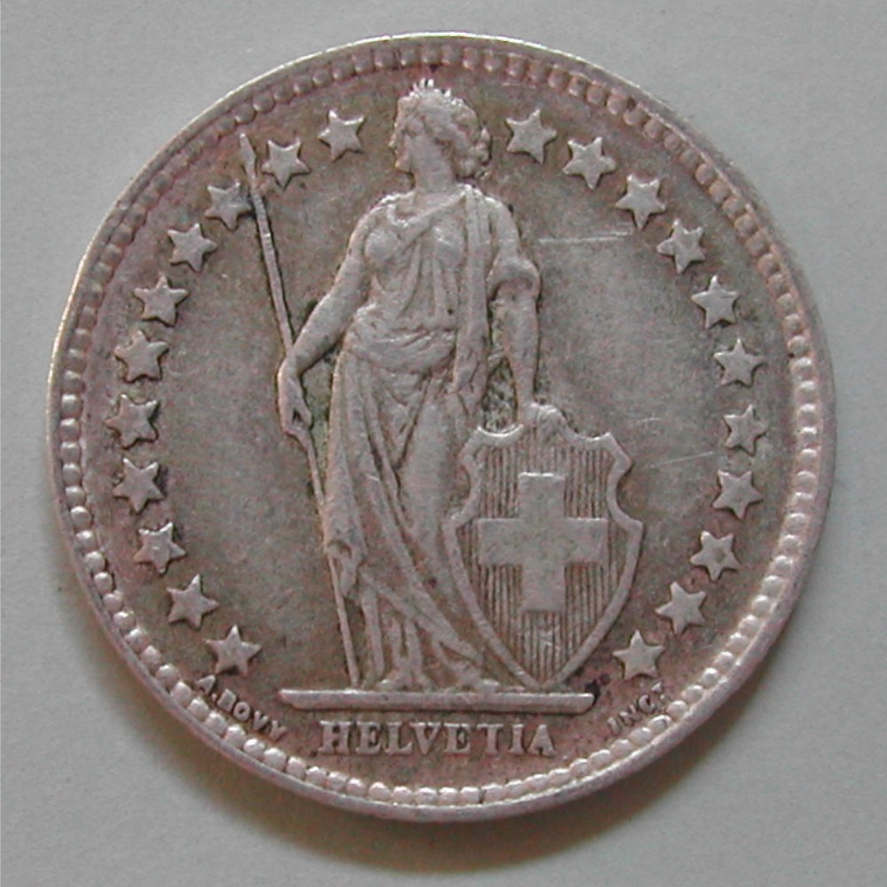 AS: stehende Helvetia mit Schild und Speer zwischen Sternen, in Ex: A BOVY – HELVETIA – INC T.,