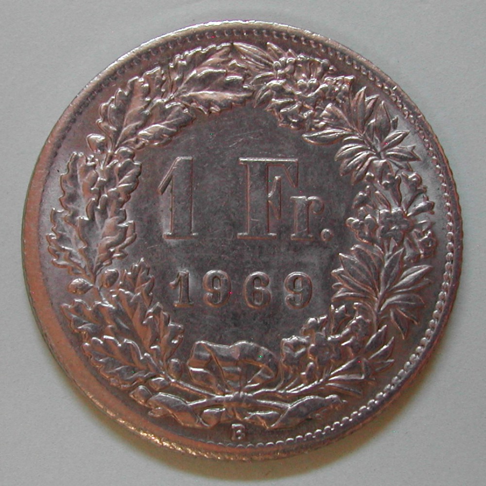 RS: 1 / Fr. / 1969 im Eichen-und Alpenrosenkranz, unten: B (Bern)