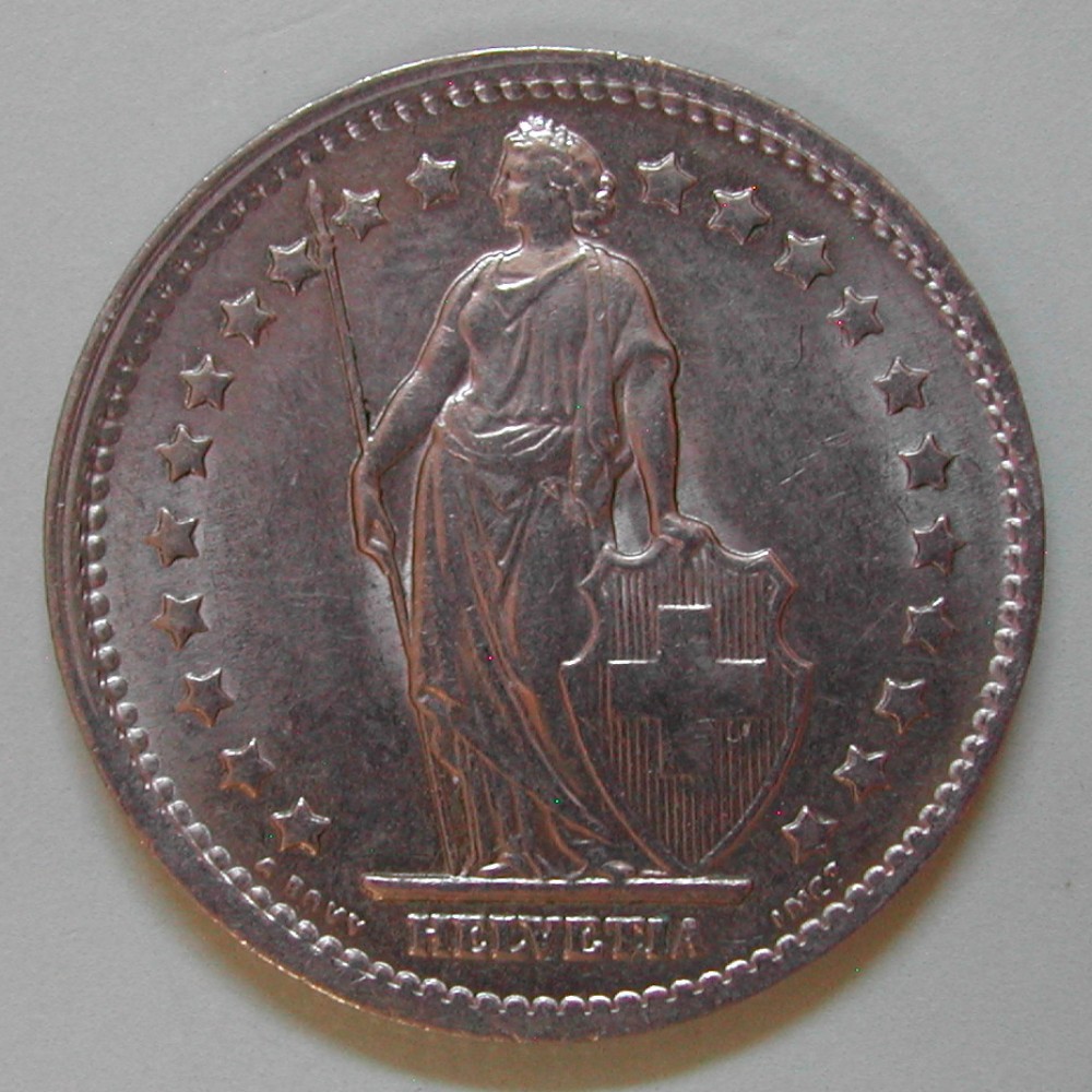 AS: stehende Helvetia mit Schild und Speer zwischen Sternen, in Ex: A BOVY – HELVETIA – INC T.,