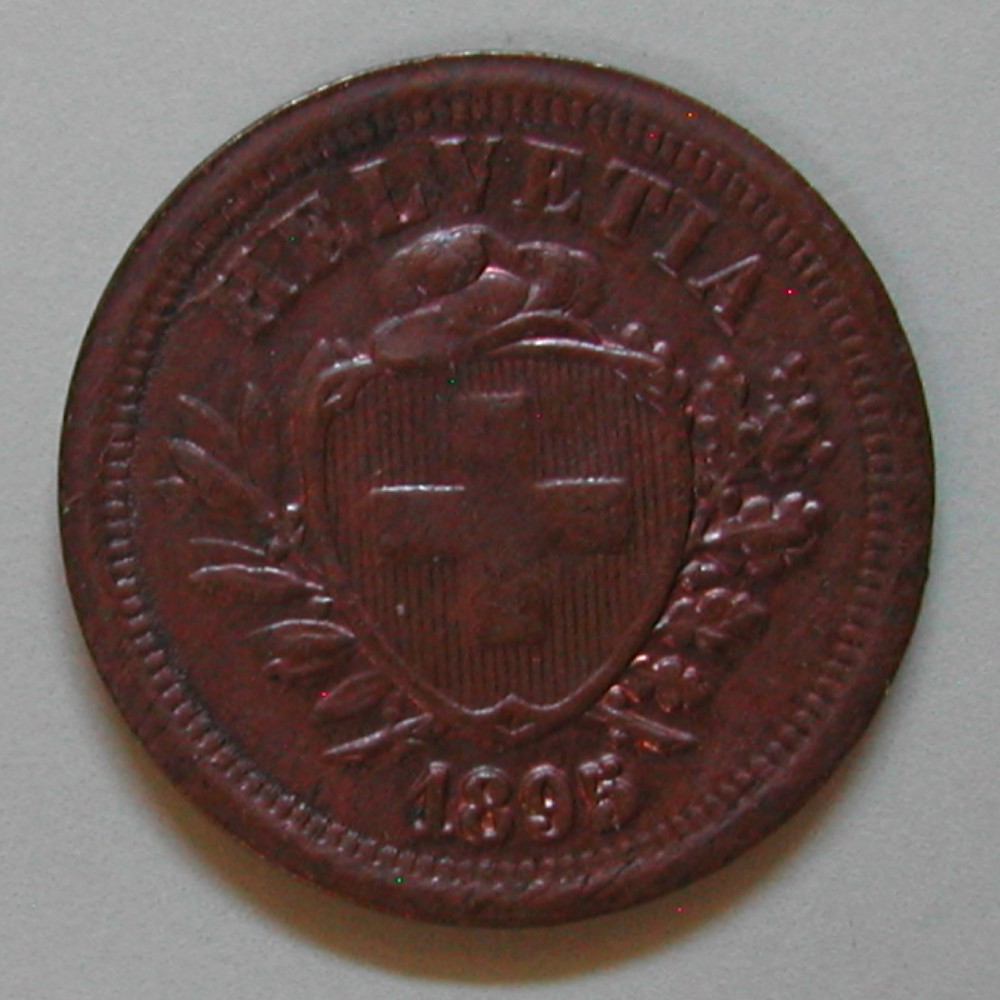 AS: HELVETIA, Wappen mit Freiheitshut, links Lorbeer-und rechts Eichenzweig, unten 1895, ABART: Stempelriss HELVETIA oberhalb der Buchstaben