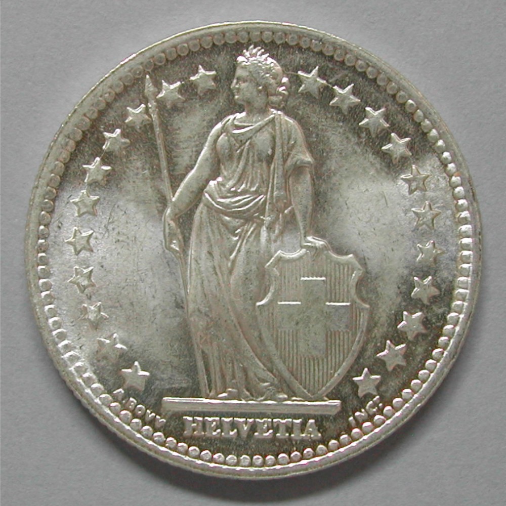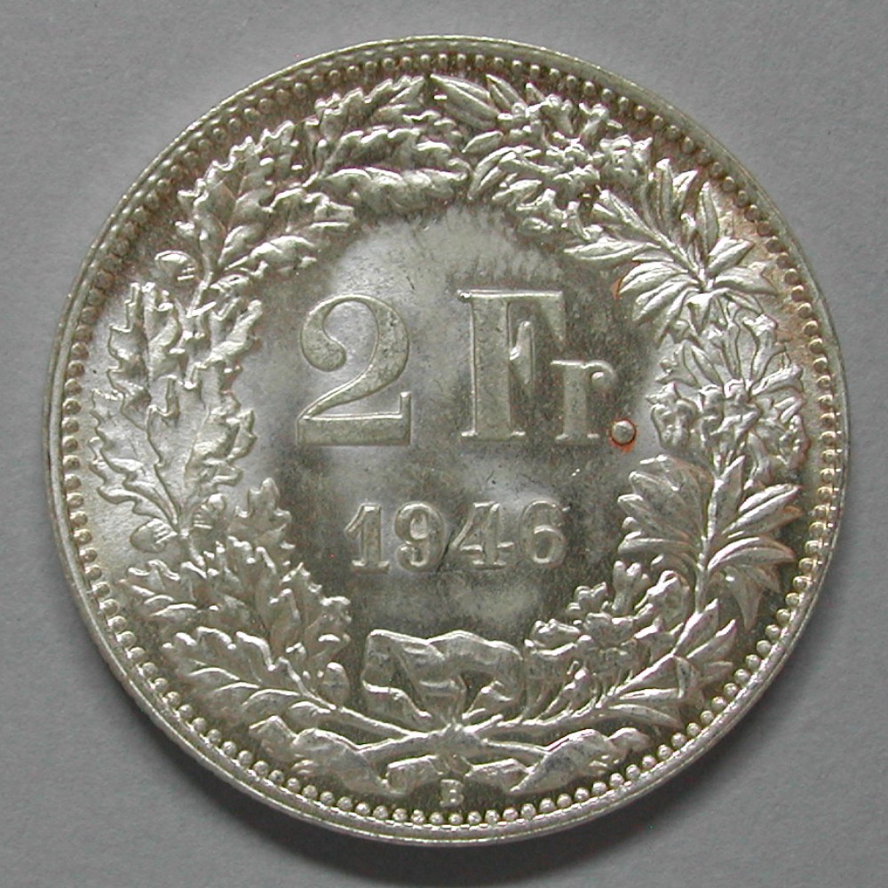 2 FRANKEN 1946 B, Ag 835, 9.98(0) gr., d=27mm, Stempelrisse, unz