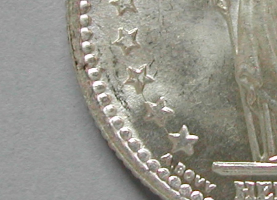 AS: stehende Helvetia mit Schild und Speer zwischen Sternen, in Ex: A BOVY – HELVETIA – INC T., ABART: feiner Stempelriss liks unten durch 3 Sterne und am 4ten * links zum Rand