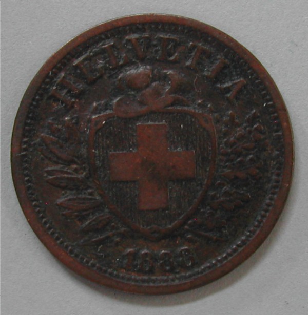 AS: HELVETIA, Wappen mit Freiheitshut, links Lorbeer-und rechts Eichenzweig, unten 1888, ABART: bei der dritten 8 fehlt der Querstrich