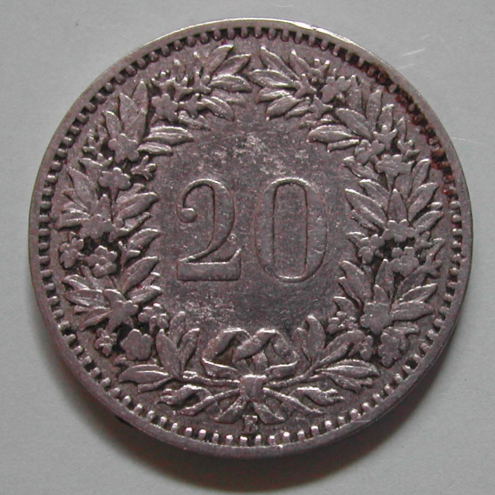 20 Rappen 1883 B, Ni, ABART: Frendkörper AS, -ss