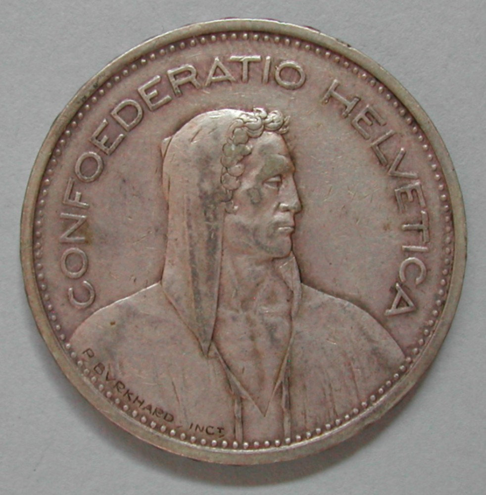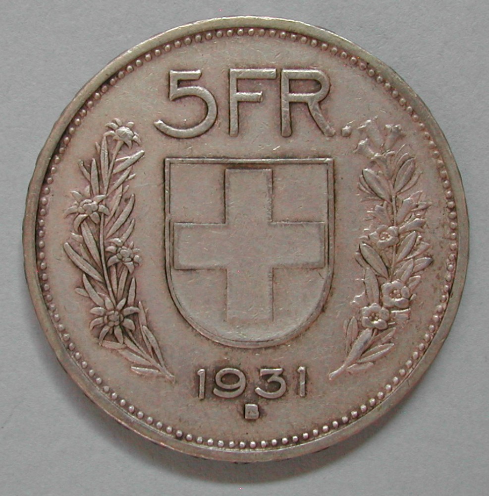 RS: 5 FR. / Wappen / 1931 / B, links Edelweiss, rechts Alpensose