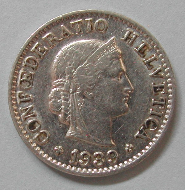 AS: CONFOEDERATIO HELVETICA ✤ 1939 ✤, jugentlicher Frauenkopf nach rechts