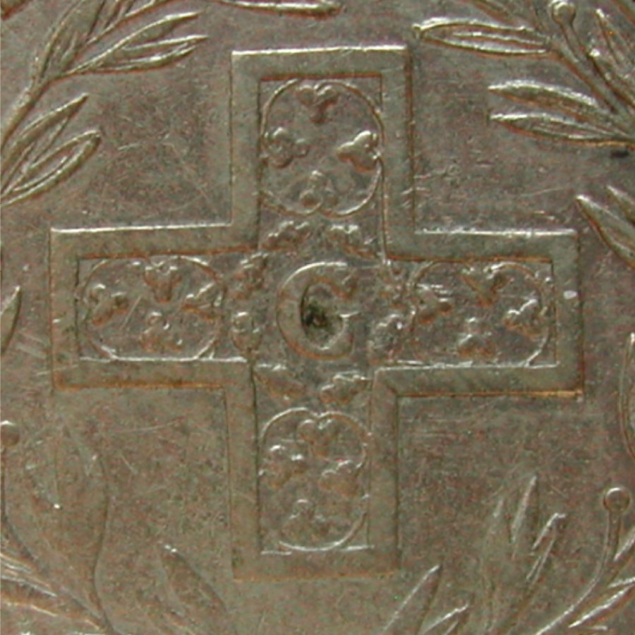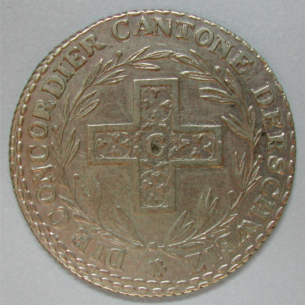 RS: DIE CONCORDIER • CANTONE DER SCHWEIZ ✿, Konkordatskreuz im Lorbeerkranz, G (!!!) ohne Punkt