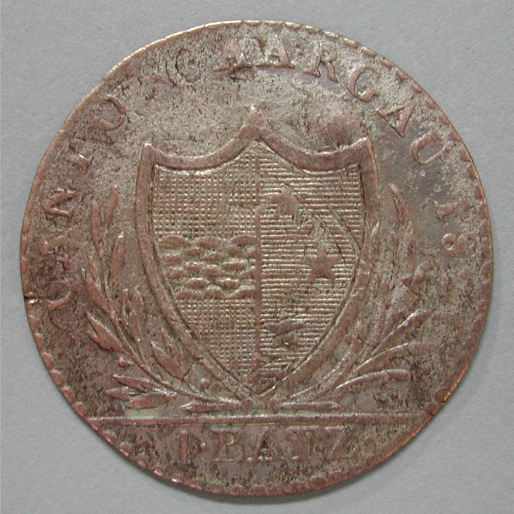AS: CANTON AARGAU 1826, spitzes Wappen zwischen Lorbeerzweigen, in Ex: 1・BAT∙Z
