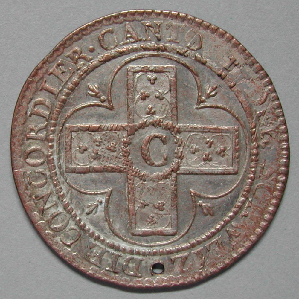 RS: DIE CONCORDIER・CANTONE DER SCHWEIZ ✿ (Loch), Konkordatskreuz im Perlkreis und Vierpass, C mit winzigem Punkt