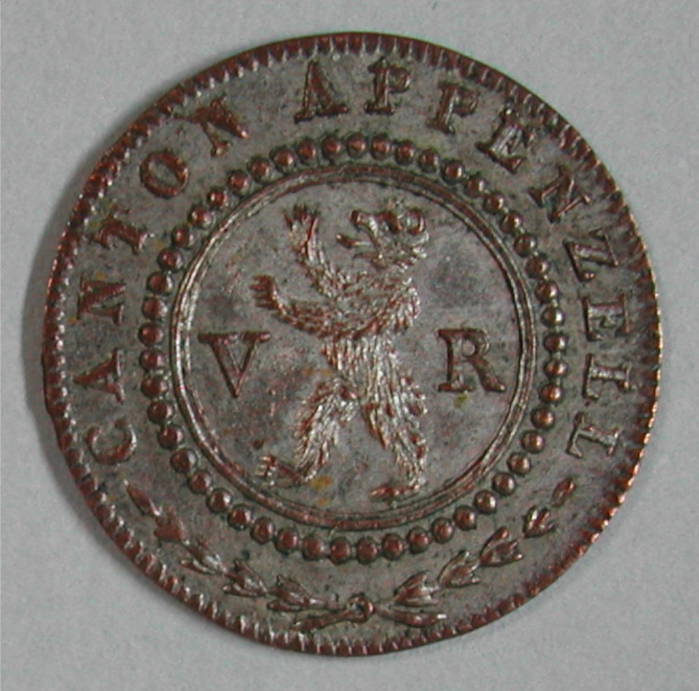 AS: CANTON APPENZELL, unten Lorbeerzweige, im Kreis nach links schreitender Bär zwischen V – R