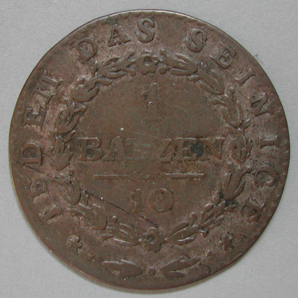 RS: ★ IEDEM DAS SEINIGE ★, 1 / BATZEN / — / 10 im Lorbeerkranz