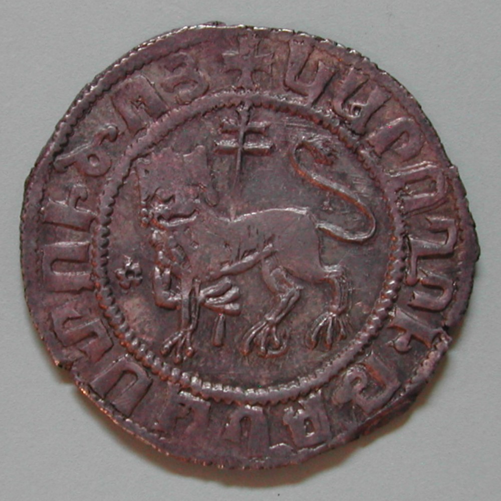 RS: Löwe nach links Doppelkreuz in Pranke haltend, davor ✿, Perlkreis und Armenische Umschrift