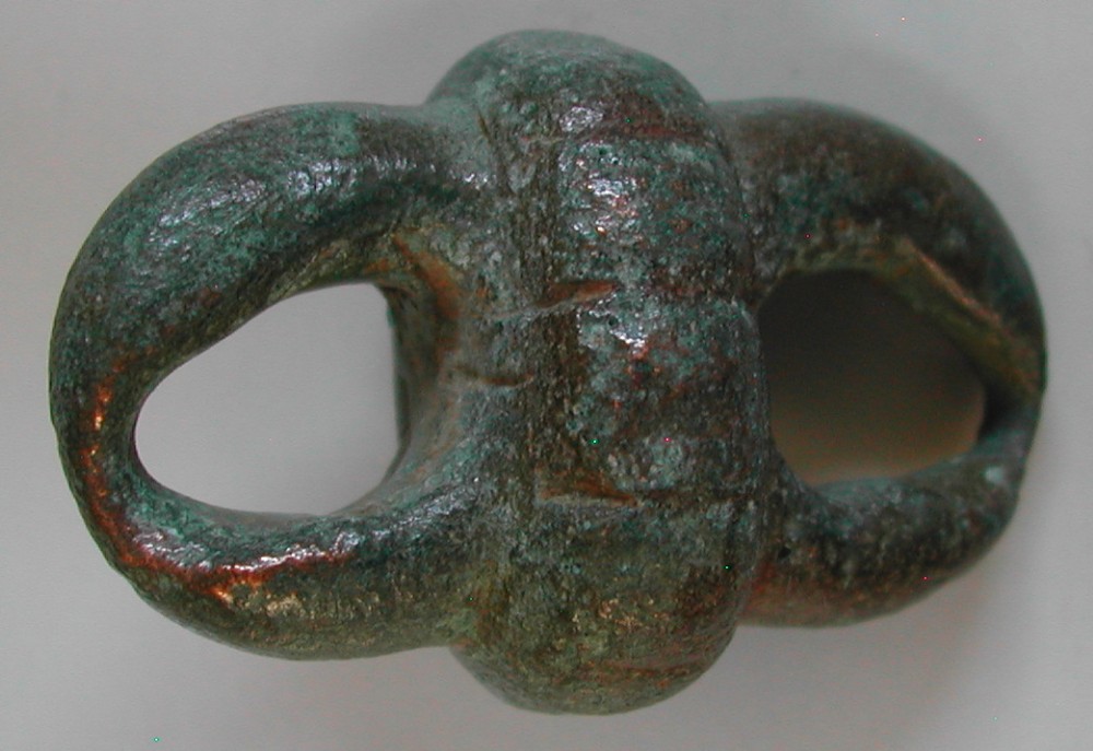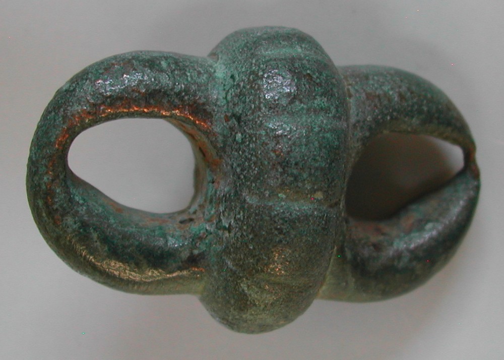 Alte, grünliche Patina, Leitöffnungen abgewetzt durch gebrauch, intakt