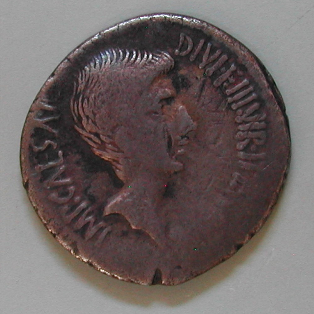 AS: IMP CAESAR DIVI F III VIR ITER (R P C), blosser Kopf nach rechts