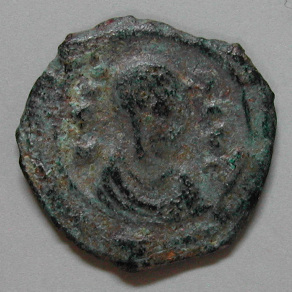 AS: Büste nach rechts, links und rechts Schrift, Linienkreis