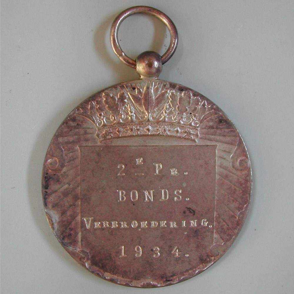 RS: KRONE über Wappenschild: 2 E Pr. / BONDS. / VERBROEDERING / 1934