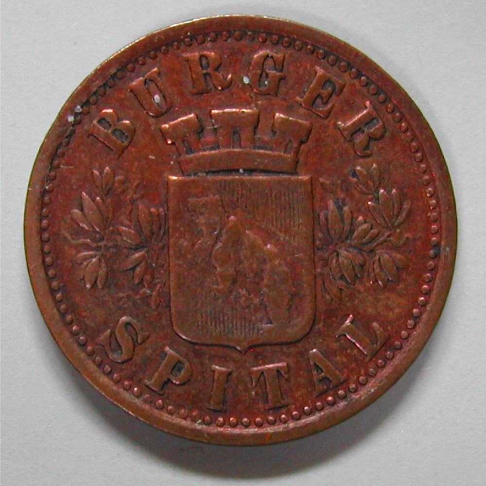 AS: BURGER – SPITAL, rechteckiges Wappen mit Mauerkrone zwischen Lorbeerzweigen, feiner Perlkreis