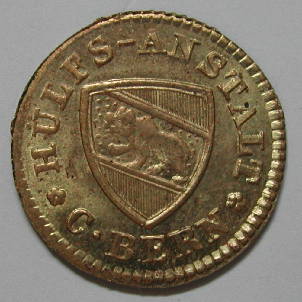 AS: HÜLFS-ANSTALT ✿ C・BERN ✿, spitzes Bernerwappen (Schild), Perlkreis