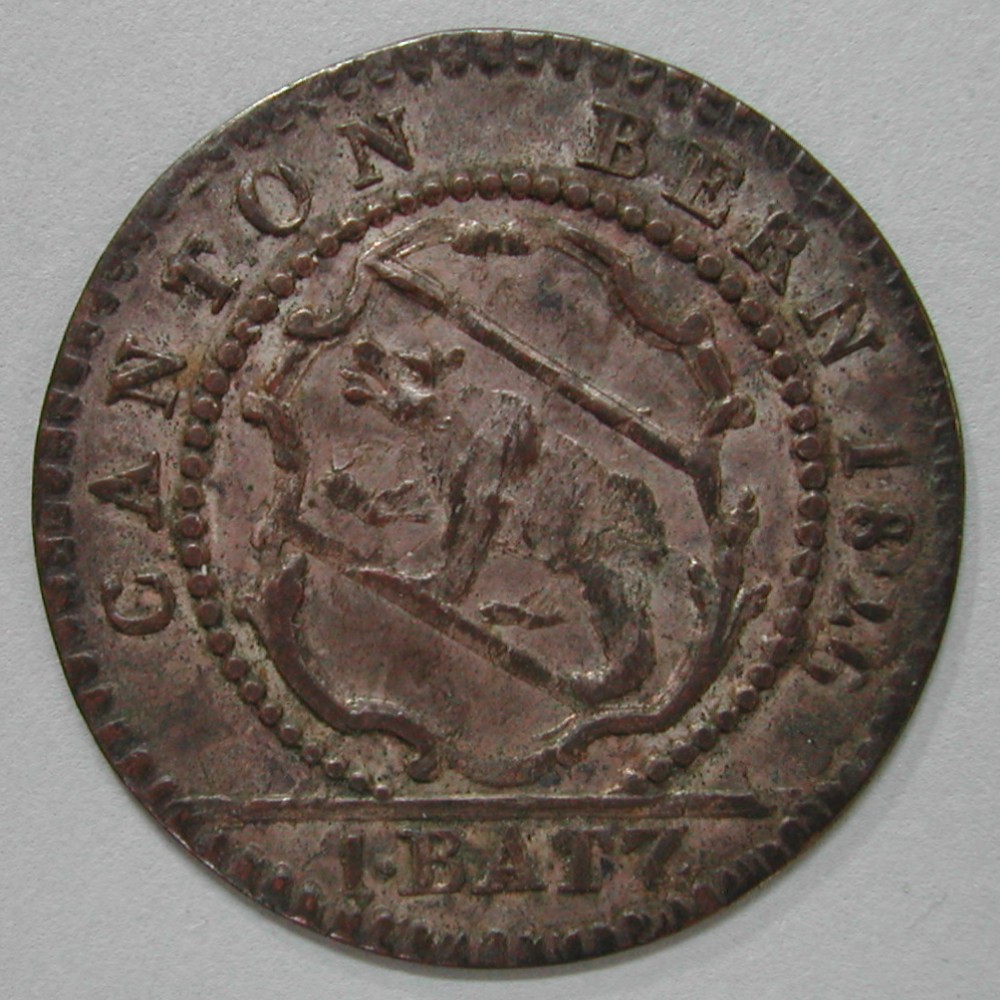 AS: CANTON BERN 1826, geschweiftes Wappen im Perlkreis, in Ex: 1•BATZ∙