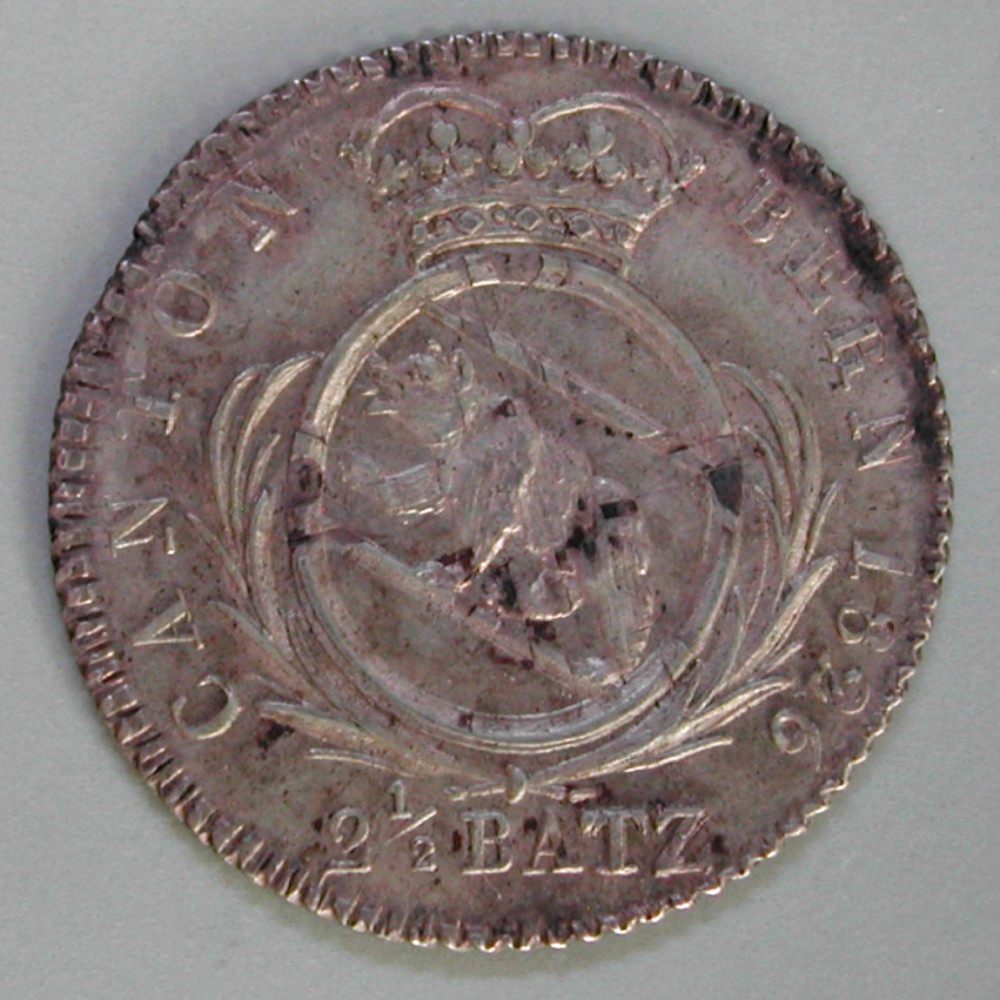 AS: CANTON – BERN 1826 – 2½ BATZ, gekröntes, ovales Wappen zwischen Zweigen