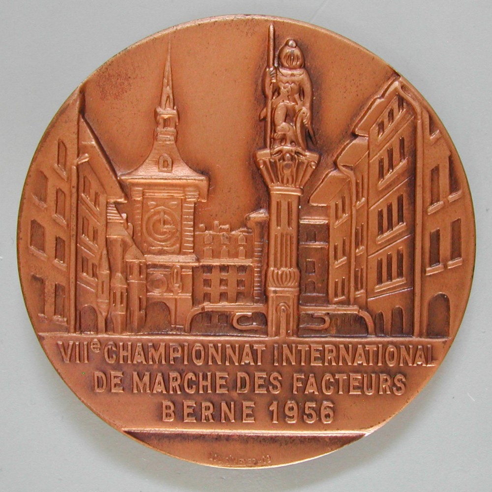 AS: Altstadt von Bern mit Zytglogge, VIIe CHAMPIONNAT INTERNATIONAL / DE MARCHE DES FACTEURS / BERNE 1956, sig: LOUIS MEYER +Co