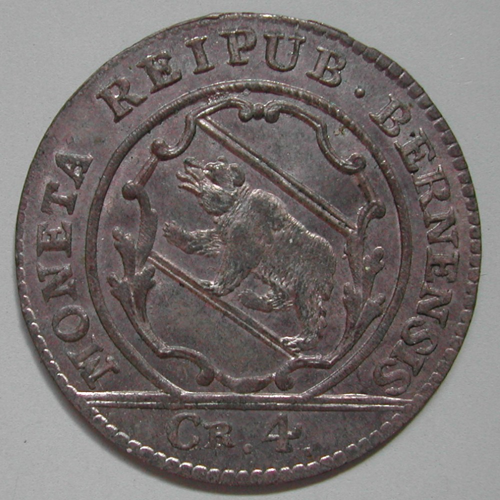 AS: MONETA REIPUB • BERNENSIS, geschweiftes Wappen im Linienkreis, in Ex: CR . 4.