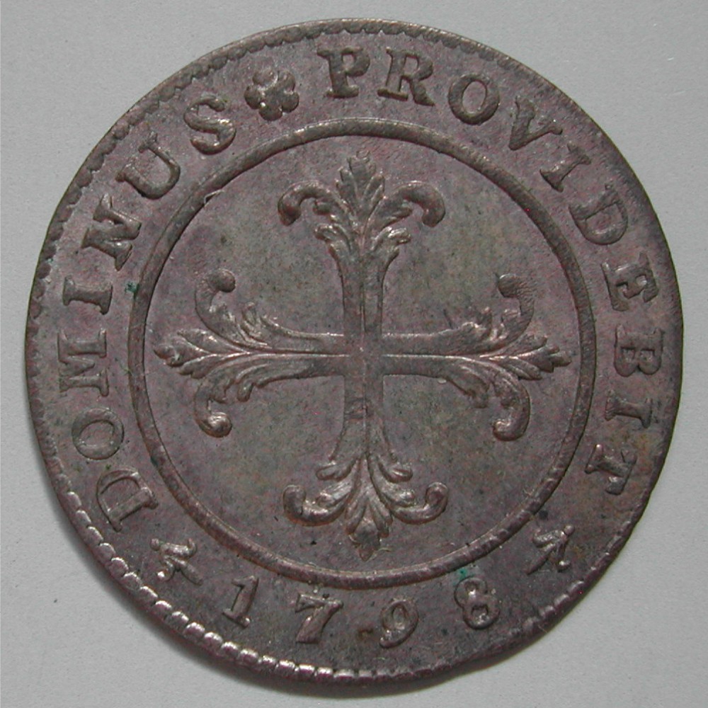 RS: DOMINUS ❀ PROVIDEBIT ➺ 1798 ➺, Kreuz mit Blumenenden im Linienkreis