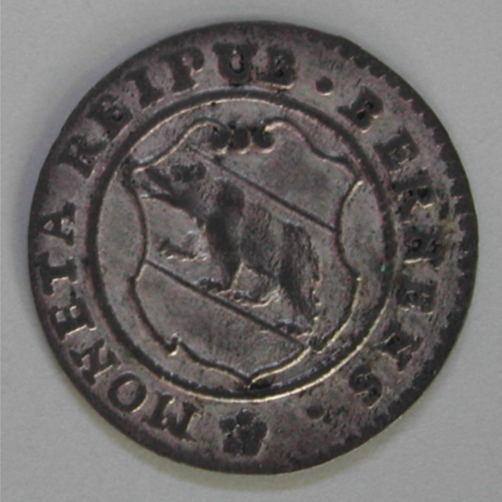 AS: MONETA REIPUB • BERNENS • ✿, Bär in geschweiftem Wappen nach links oben steigend