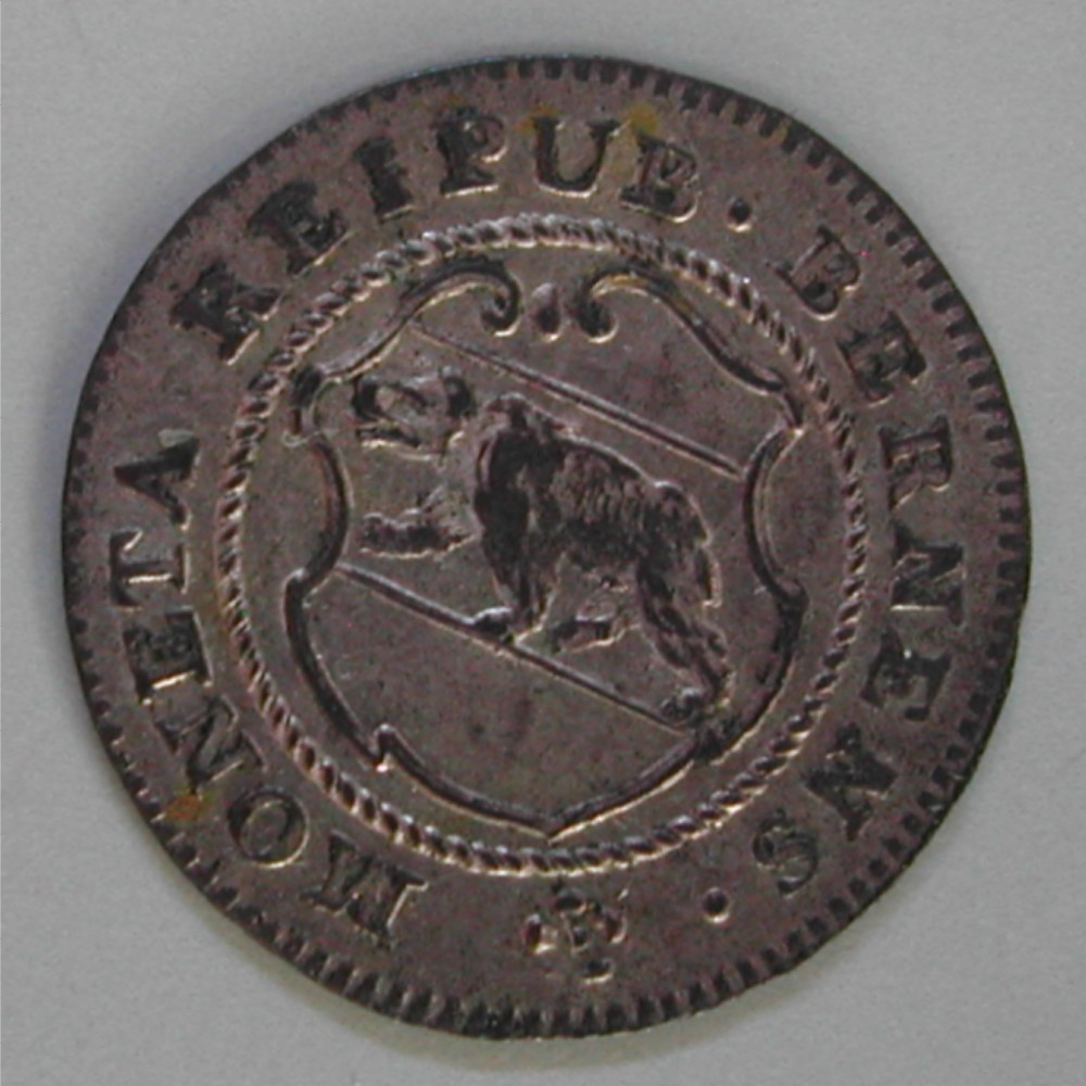 AS: MONETA REIPUB • BERNENS • ✿, Bär in geschweiftem Wappen nach links oben steigend