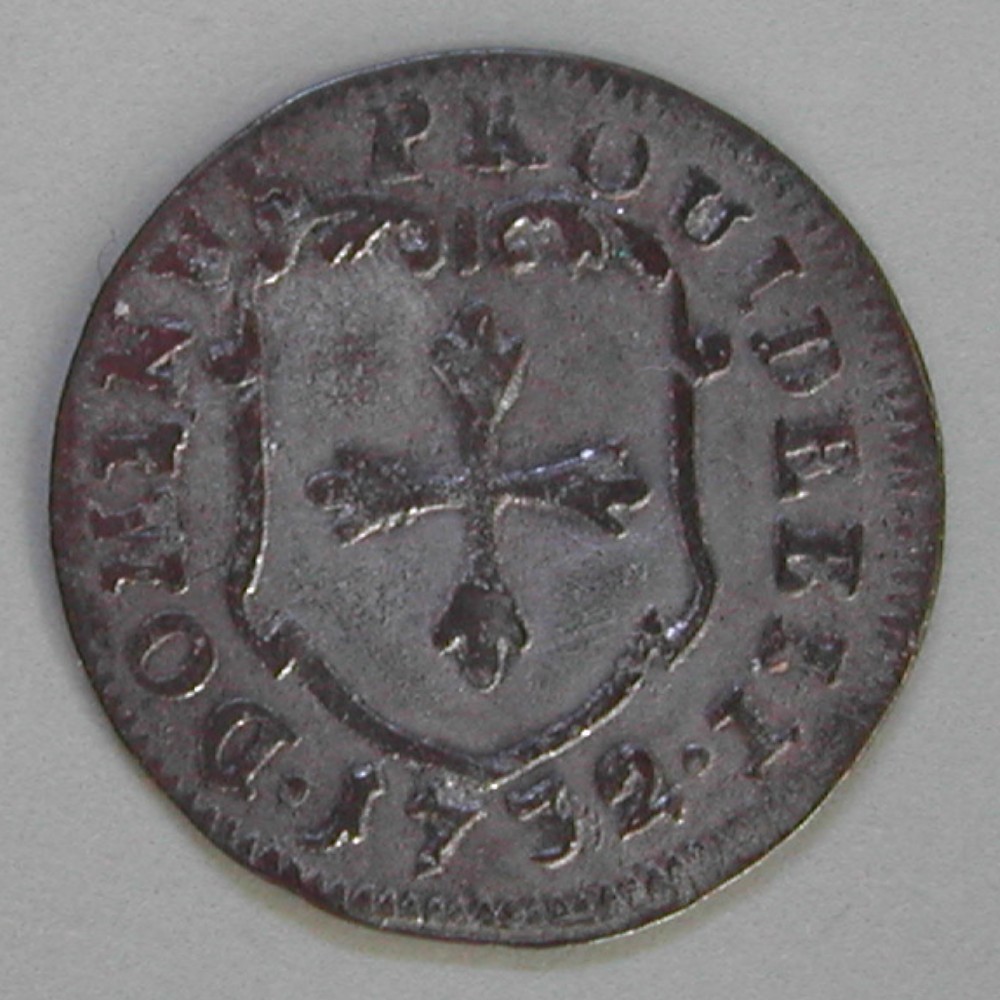 RS: DOMINUS PROVIDEBIT • 1732 •, Kreuz in geschweiftem Schild