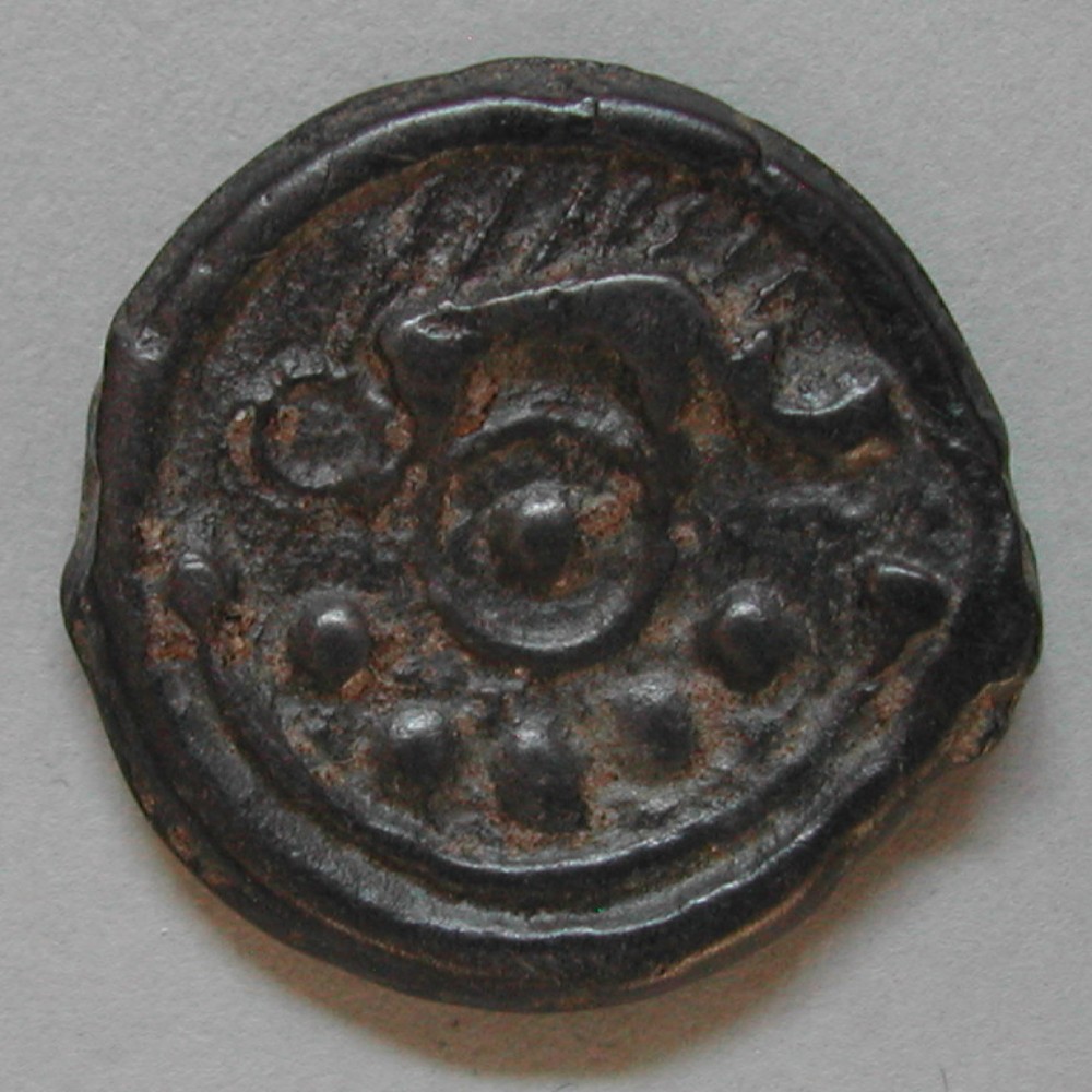 RS: Keiler nach links über Kreis mit Mittelpunkt, unten 5 Kugeln in Torques mit 2 Endpunkten