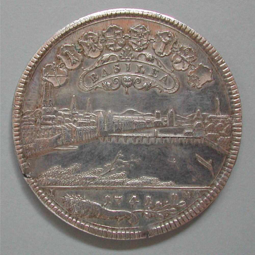 RS: 8 Wappen / BASILEA in Schriftband mit Ranken, Stadtansicht, in Ex: I -1741 – HM über Füllhorn und Lorbeerzweig