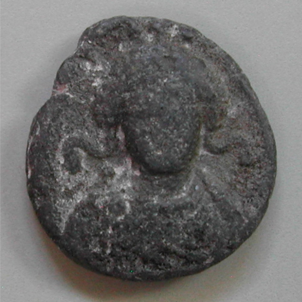 AS: Büste Christi frontal, nimbiert (?) mit S-förmigen Locken