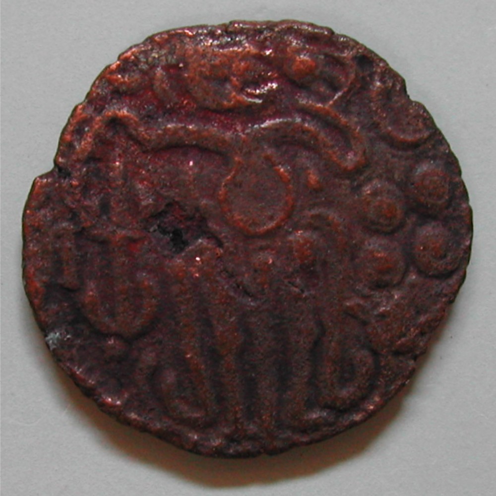 RSnech rechts sitzender König, rechts frühe Schriftzeichen, Perlkreis