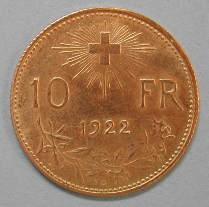 CH, 10 FR. VRENELI 1922, GOLD, Av 3.18(3)gr, d=19mm, FÄLSCHUNG, ss+