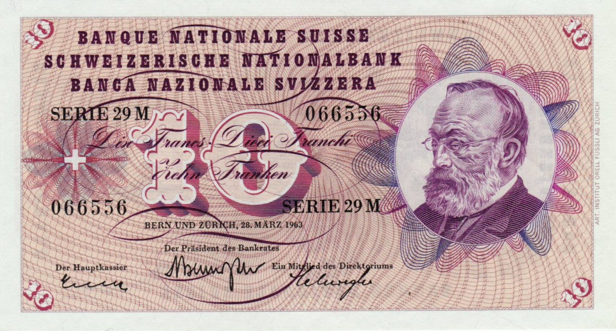CH, 10 FRANKEN 1963, 29 M, unz, 138x75mm