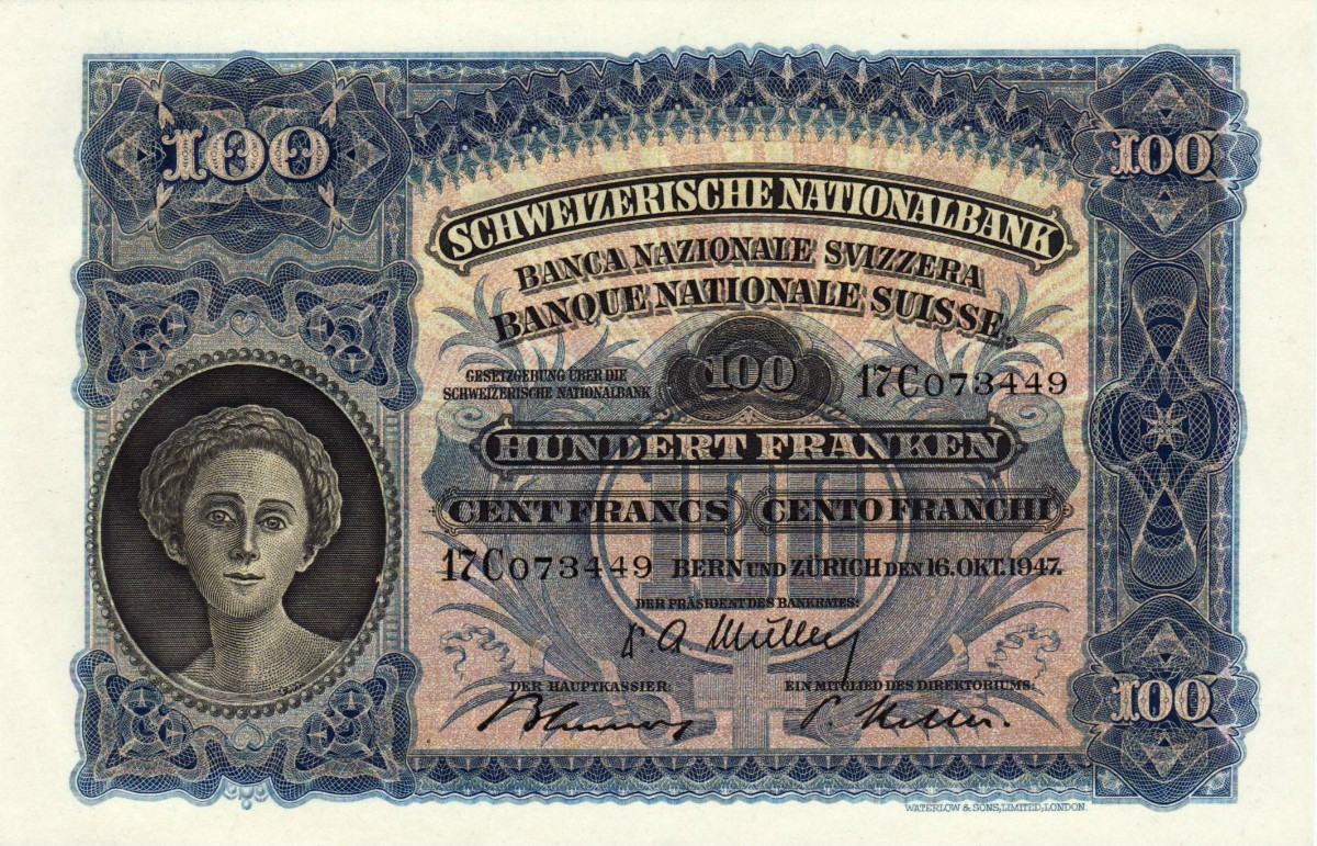 AS: links in ovalem Medaillon Frauenbildnis, 3 sprachige Texte und Wertangaben, Datum, Unterschriften