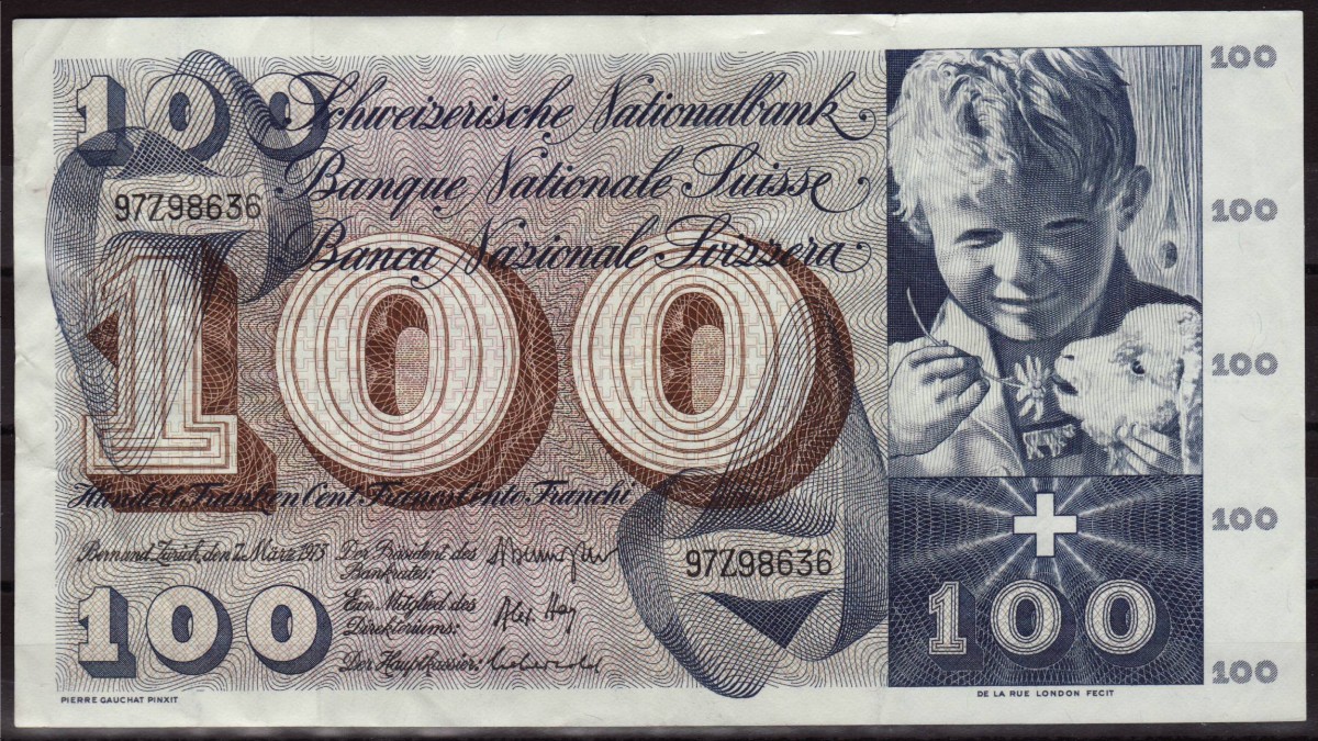 CH, 100 FRANKEN 7. März 1973, 97 Z – 98636, wenig gebraucht
