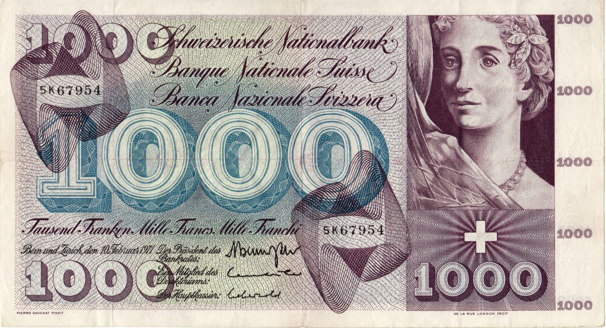 AS: SNB, 5K67954, 1000, 10. Februar 1971, Frauenbildnis rechts