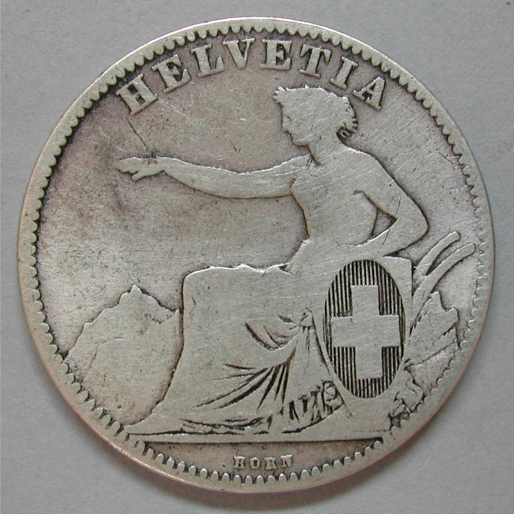 CH, 2 FRANKEN 1863 B (BERN), Ag 800, 9.6 gr., d=27mm, s+, R! Auflage 0.5 Mio