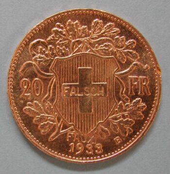 CH, 20 FR. 1933 !, VRENELI, GOLD, FÄLSCHUNG, vz