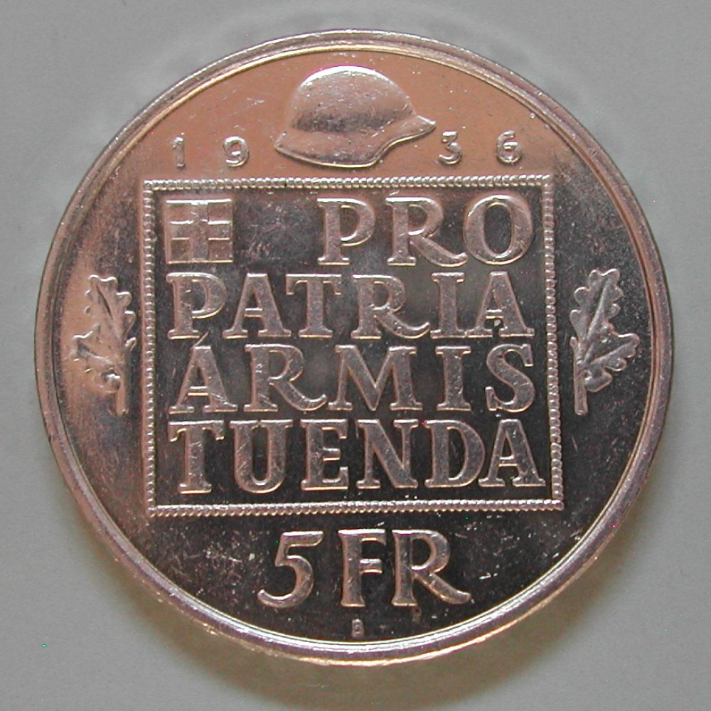 CH, 5 FR GEDENKMÜNZE 1936, Ag 835, 15 gr., d=31mm, vz