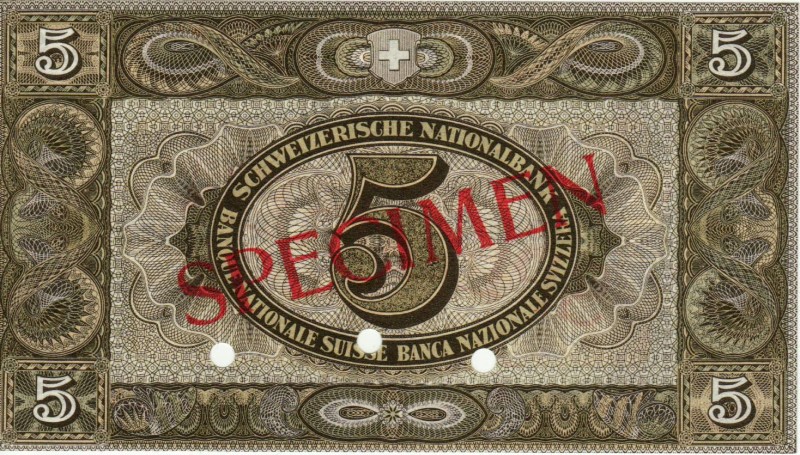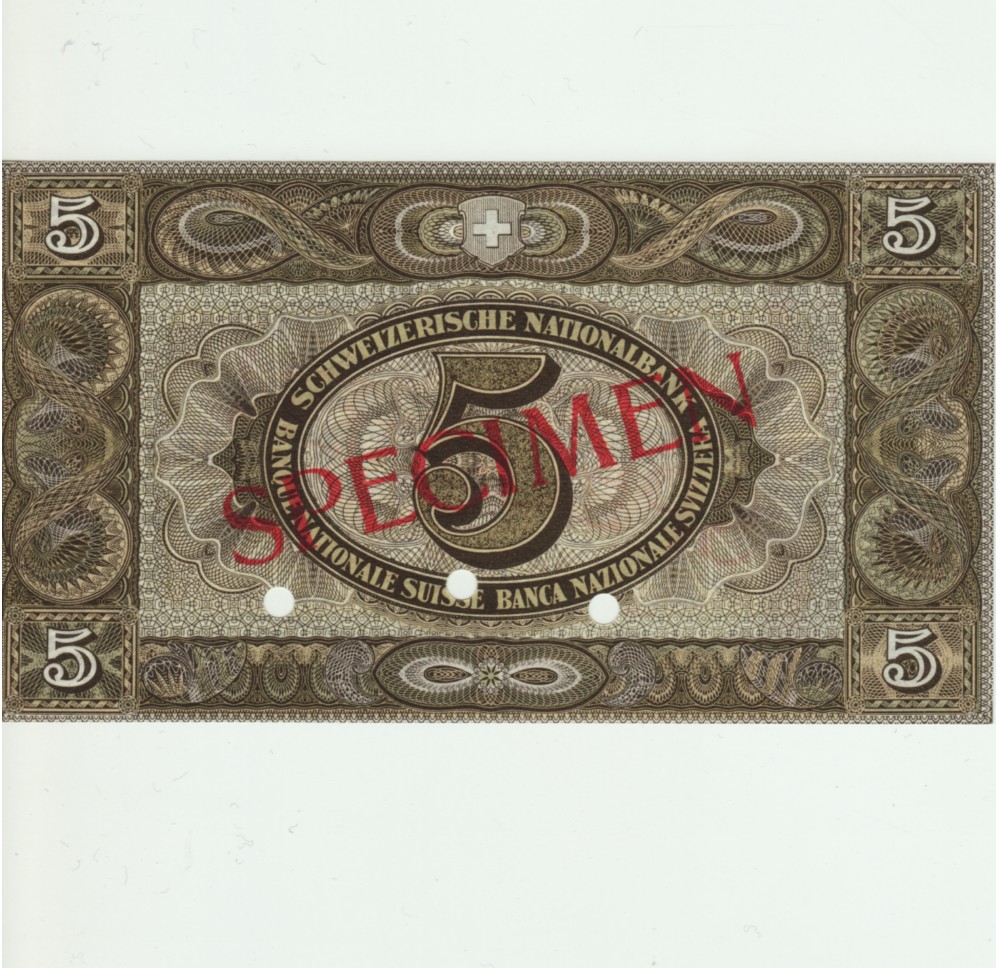 RS: 5 im Oval, SCHWEIZERISCHE NATIONALBANK (3-sprachig), roter Überdruck: SPECIMEN