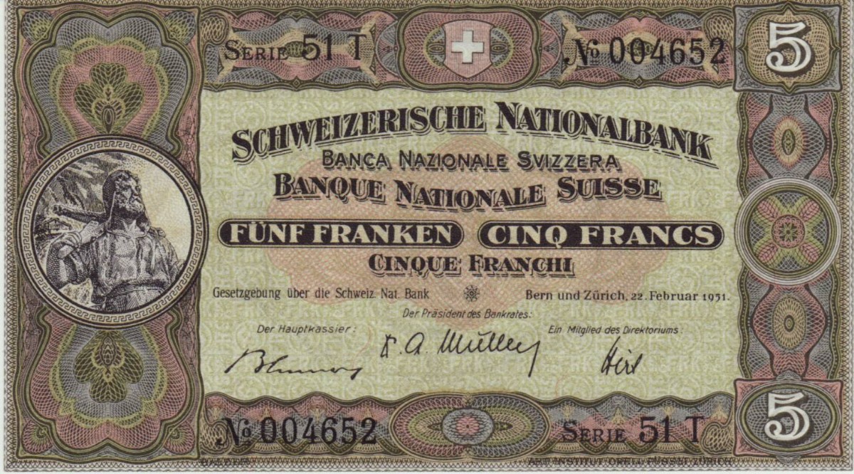 RS: 5 im Oval, SCHWEIZERISCHE NATIONALBANK (3-sprachig),